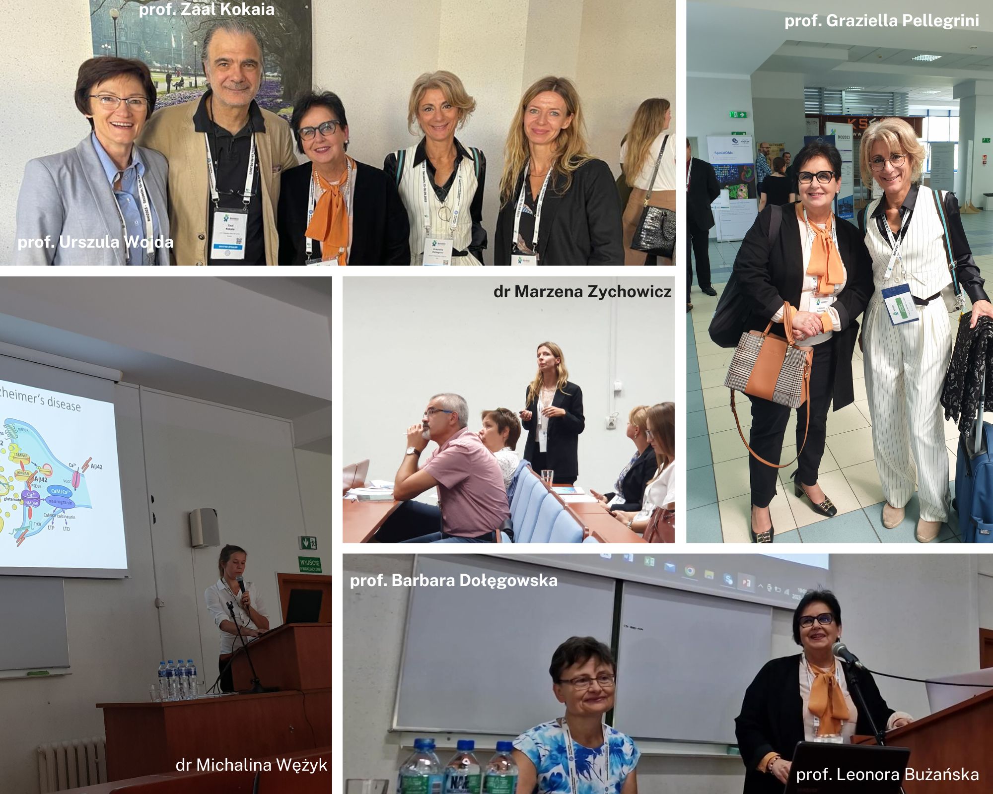 Profesor Leonora Bużańska, wraz prof. Barbarą Dołęgowską (prezydentem BIO 2023, PUM) przewodniczyły Sesji „Stem Cells Biochemistry”, w której wykładowcami byli prof. Zaal Kokaia (Stem Cell Center, Department of Clinical Sciences, Lund University, Sweden), prof. Gustav Steinhoff (University Rostock, Germany) oraz Leonora Bużańska (Zakład Bioinżynierii Komorek Macierzystych IMDiK PAN). Profesor Zaal Kokaia w fascynujący sposób opowiadał o funkcjonalnej integracji ludzkich reprogramowanych neuronów i oligodendrocytów do sieci neuronalnej in vitro hippokampa ludzkiego, podczas gdy prof. Steinhoff mówił o zastosowaniu komórek macierzystych i roli sztucznej inteligencji w leczeniu schorzeń kardiologicznych. Profesor Leonora Bużańska wprowadziła słuchaczy w świat ludzkich organoidów mózgu i mówiła o zmianach mitochondrialnych towarzyszących wczesnemu rozwojowi ludzkiego mózgu. Doktor Michalina Wężyk (Zakład Neurogenetyki i Genomiki Funkcjonalnej IMDiK PAN) w sesji „Signaling pathways and cellular regulation” mówiła o zaburzeniach synaptycznych w modelu choroby Alzheimera otrzymanego z indukowanych komórek pluripotencjalnych pacjenta. Doktor Marzena Zychowicz (Zakład Bioinżynierii Komórek Macierzystych IMDiK PAN) w sesji „Biomaterials, cells and their interactions” przestawiła wyniki badań nad mechanizmem molekularnym mechanotransdukcji w komórkach macierzystych iPSC i mezenchymalnych w różnych rusztowanach biomateriałowych 3D.
